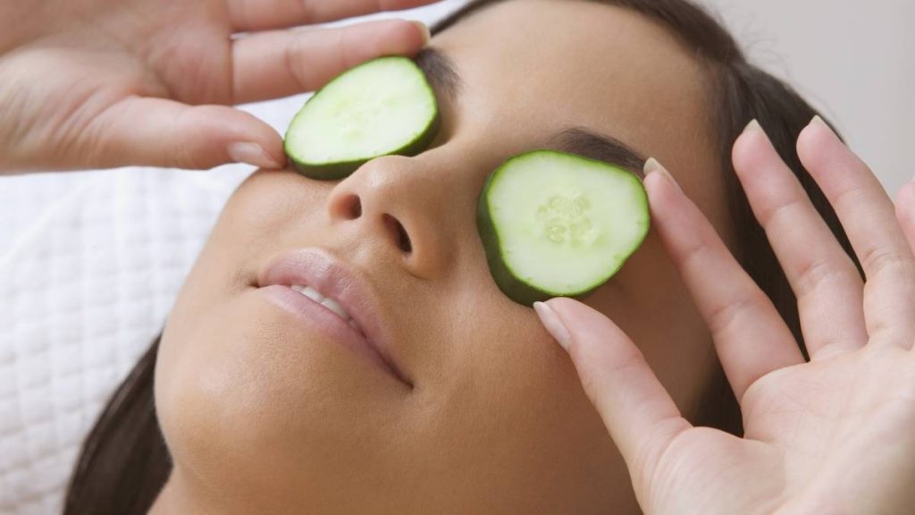 - Đặt 2 lát dưa leo lên 2 mắt, thư giãn từ 10 – 15 phút sau đó rửa lại mặt với nước sạch.